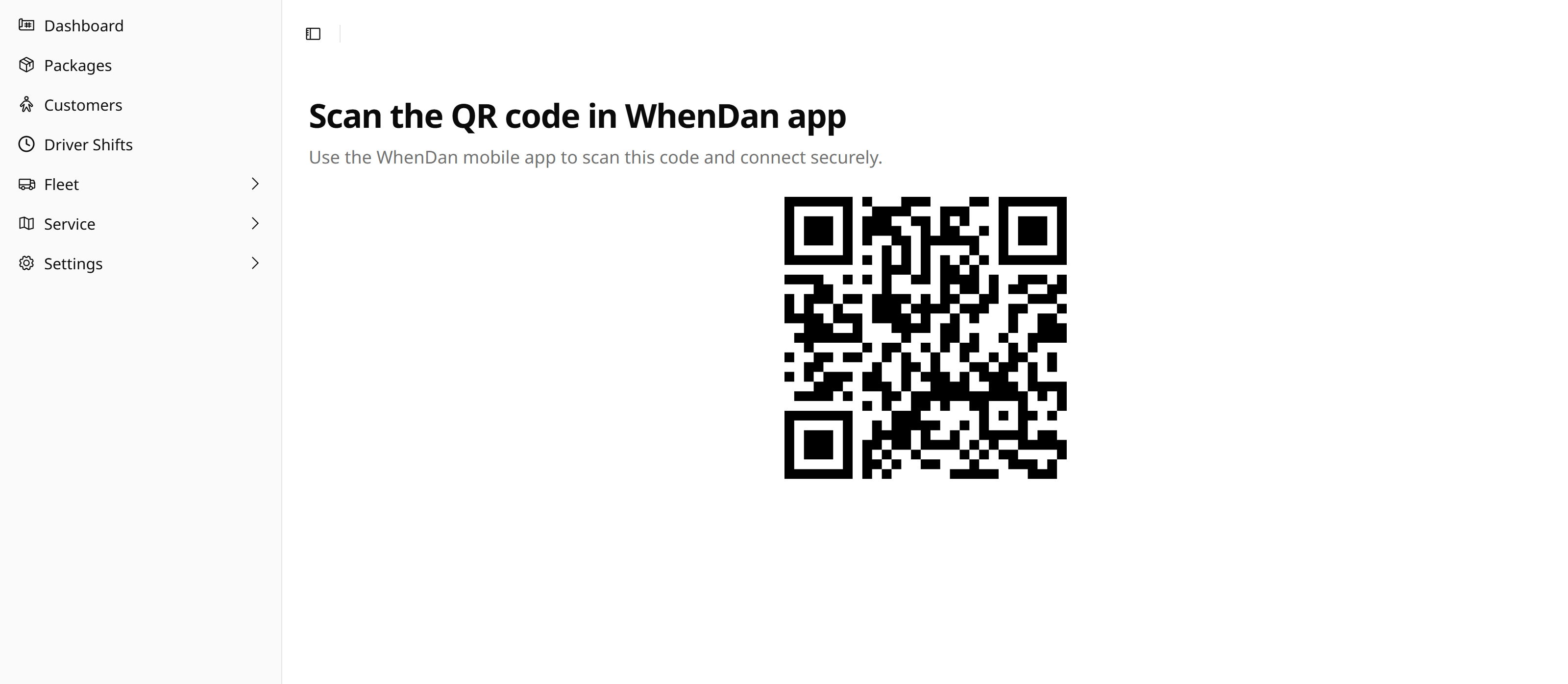 To get started with the Whendan mobile application on a self hosted instance, drivers will need to scan the QR code provided by the dispatch team available at /dashboard/settings/mobile